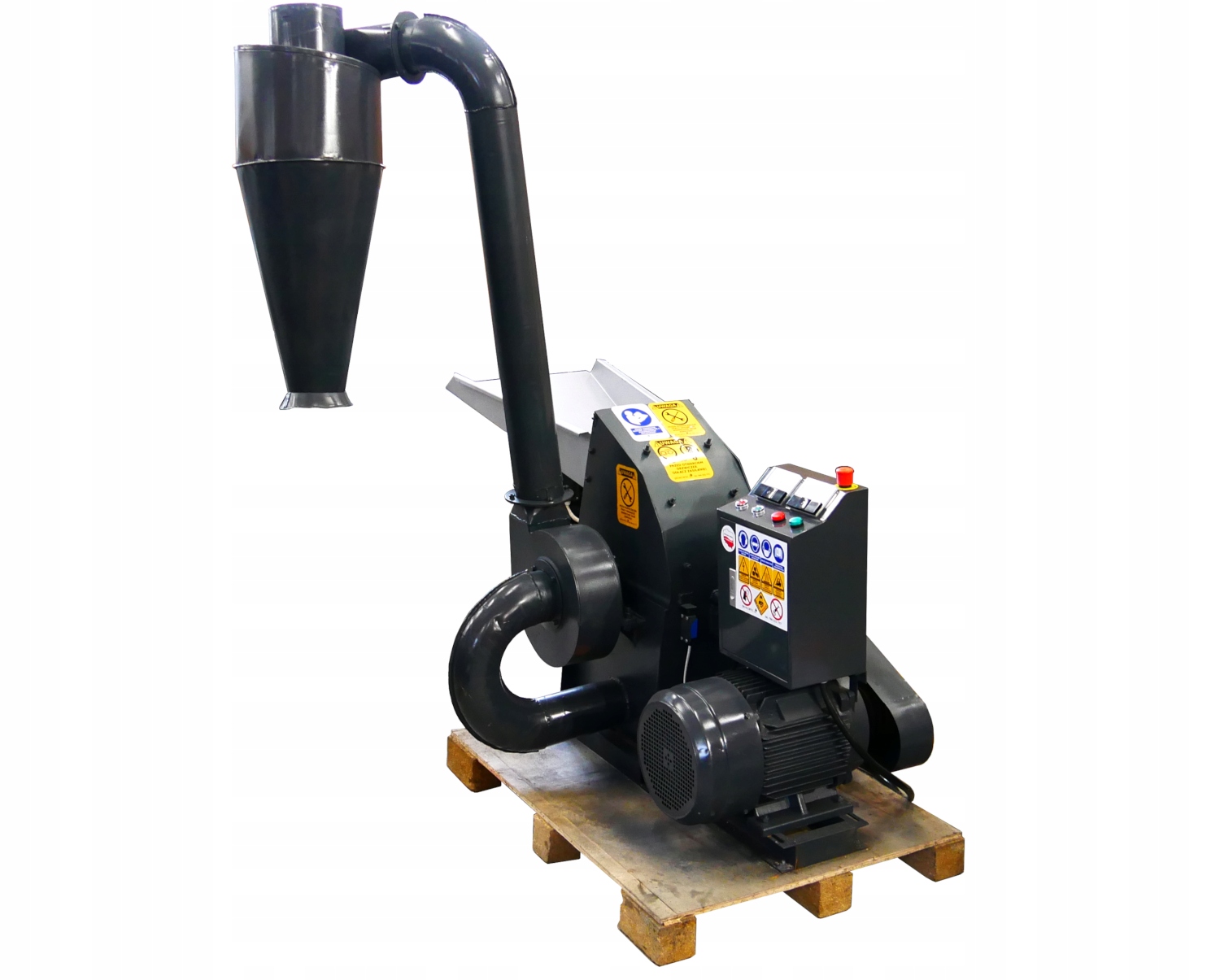Млин використовується у виробництві пелет, тому що після подрібнення матеріал отримує ідеальну фракцію для гранулювання. Крім того, він функціонує як фільтр, який утримує всі небажані елементи, що містяться в матеріалі, які можуть пошкодити пелетник, напр. металеві елементи, жорсткі сучки, каміння. Молотковий млин потужністю 11 кВт досягає продуктивності до 500 кг/год залежно від сита, що використовується, і вологості вихідного матеріалу. Пристрій призначений для роботи з дрібними деревними відходами, гілками та плитами фракцією не більше 50 мм