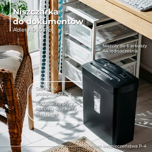 Adler AD 1037 — це ефективний і компактний знищувач документів, який забезпечує високий рівень безпеки та зручності використання. Ідеально підходить для офісів, домашнього використання та місць, де необхідно ефективне знищення конфіденційної інформації.