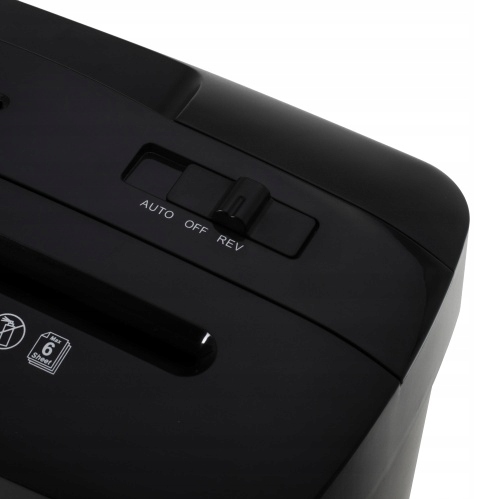 - Знищує до 6 аркушів А4 одночасно (80 г/м2), забезпечуючи швидку та ефективну утилізацію документів.
