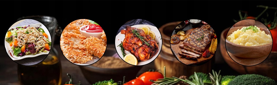 - Можуть ефективно подрібнити курку, свинину, яловичину та овочі. і широко використовується для приготування різноманітних страв, таких як тако, буріто, шашлик зі свинини, салат з тунцем, курячий салат і запіканки.