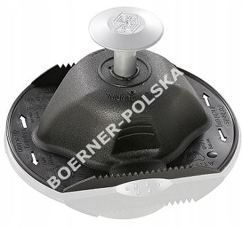 - Ручка для утримання овочів і фруктів під час нарізання, т.зв Гриб– має 5 металевих шпильок, на які наклеюємо виріб, який хочемо вирізати. Це полегшує роботу, забезпечуючи більш зручне захоплення порівняно з тим, як тримати в руці продукт, який розрізають.