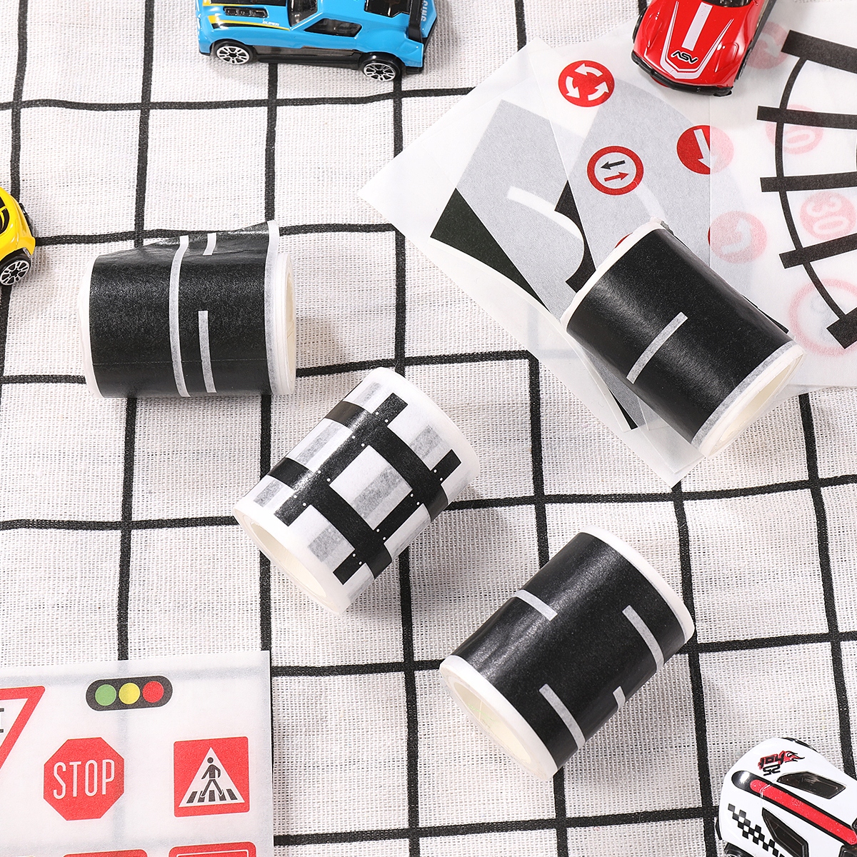 Цей продукт являє собою набір дорожніх маскувальних стрічок і наклейок. Легко знімається після закінчення, не залишає слідів. Чудовий подарунок для дітей, хлопчиків та дівчаток. З дитинства і вище. Ідеально підходить для встановлення зошитів або щоденників, різдвяних прикрас, креативних DIY вигнутих маскувальних доріг для дітей, які тренують модельні іграшки.