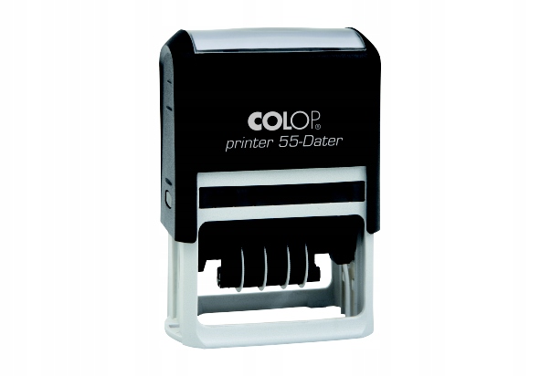 Темою є прямокутна марка з текстовою табличкою Штамп із датою Colop 55