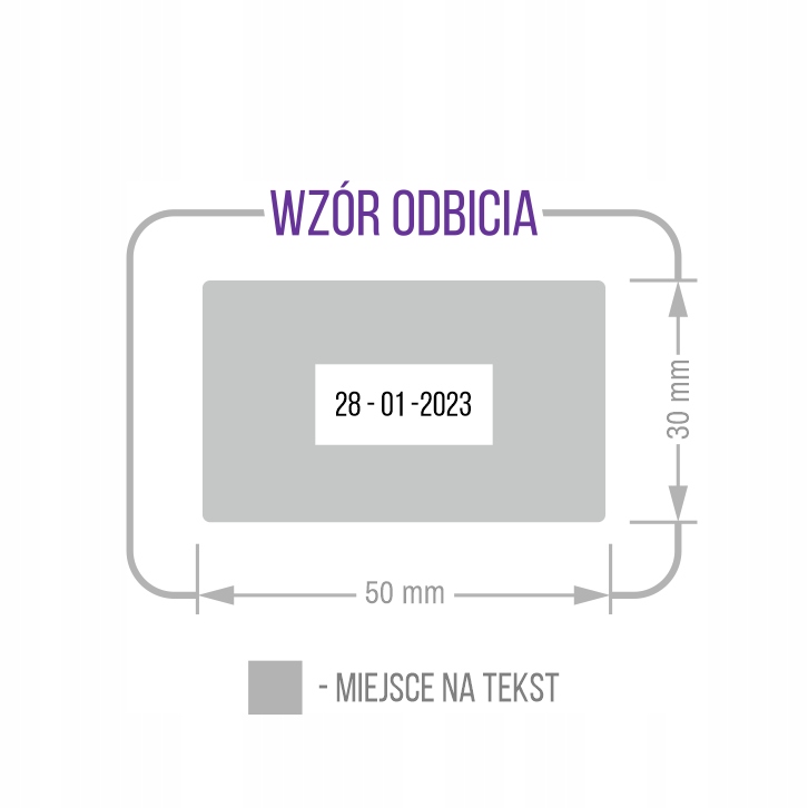 - Розміри зображення: дата - 3 x 20 мм + текст - 50 x 30 мм