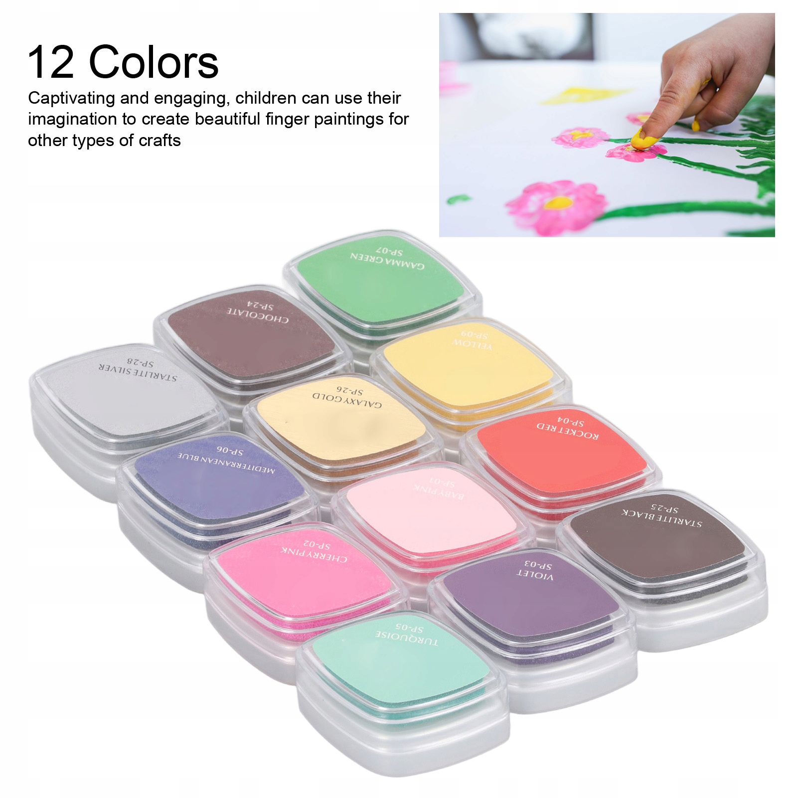 1. 12 кольорів: Це барвисте стимулююче весло має 12 кольорів, які чудово виглядають і привертають увагу дітей і можуть використовувати їх уяву для створення прекрасних зображень пальців для інших видів ремесла.