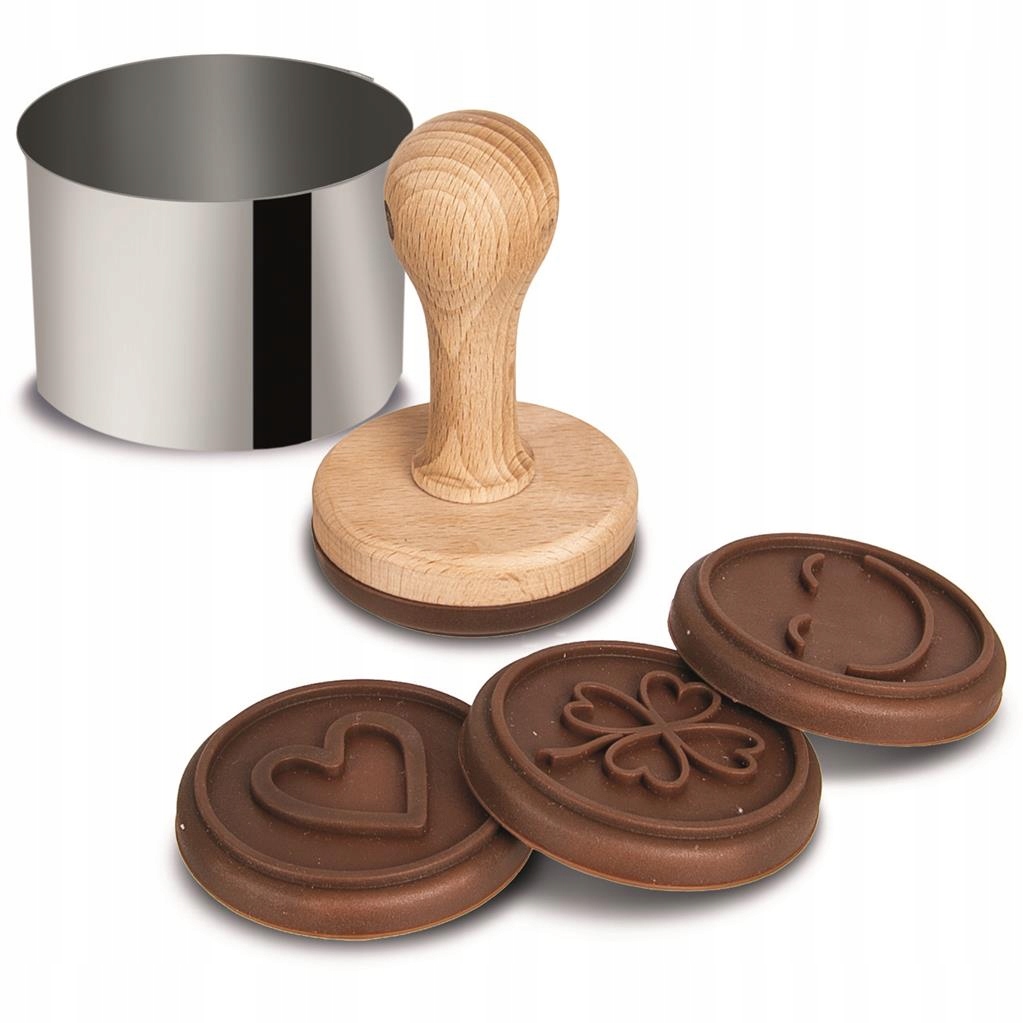 Дерев'яний штамп для декорування печива зі змінними силіконовими кришками.