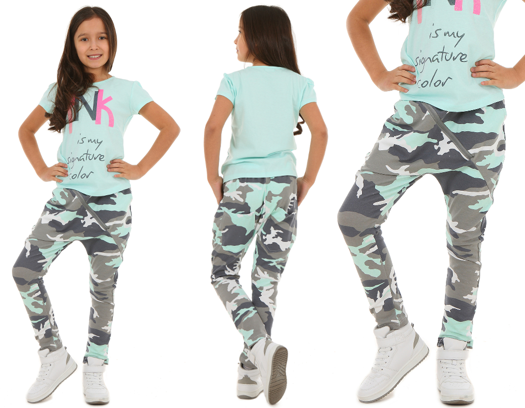 Пропонуємо камуфляжні штани для дівчат! Це наймодніший фасон, мішкуватий. Спортивні костюми вільніші зверху і мають трохи занижену промежину, потім звужуються донизу. Спереду розташована декоративна кавоварка контрастного кольору. Штани мають дві кишені ззаду і спереду, зручний шнурок на талії. Спортивні костюми відмінно носяться, матеріал міцний і м'який на дотик. Такі штани - чудове рішення поєднати моду та комфорт в одному.