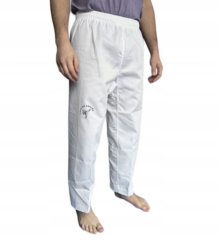 Штани Fighting Empire (ребристий матеріал). Виготовлений з дуже легкого ребристого матеріалу (65% поліестер і 35% бавовна) з ніжною структурою плетіння. Спеціальна технологія, яка використовується під час його виробництва, гарантує чудовий комфорт і довговічність. Ідеально підходить для занять бойовими мистецтвами.