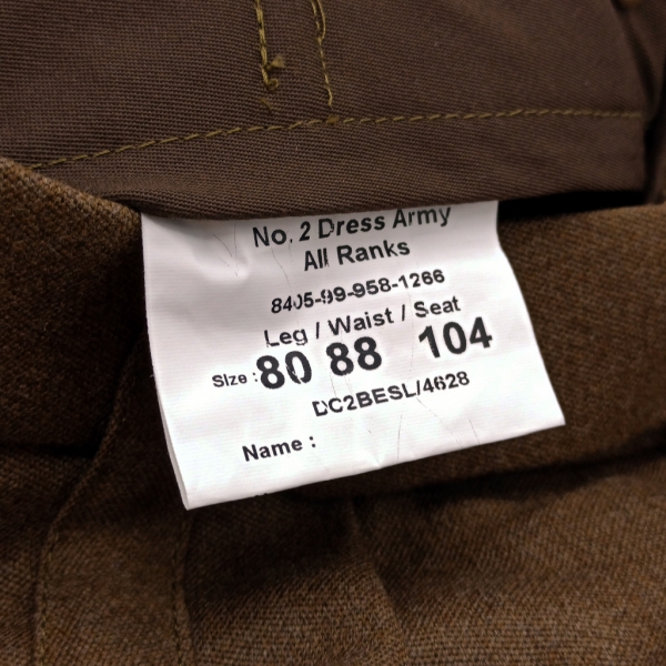 Оригінальні штани з ресурсів британської армії. Вони є частиною уніформи британської армії №. 2. З 100% вовни. Штани мають дві кишені спереду і дві ззаду. Оснащений регулюванням обхвату талії. Застібається на блискавку і два гудзики всередині пояса.