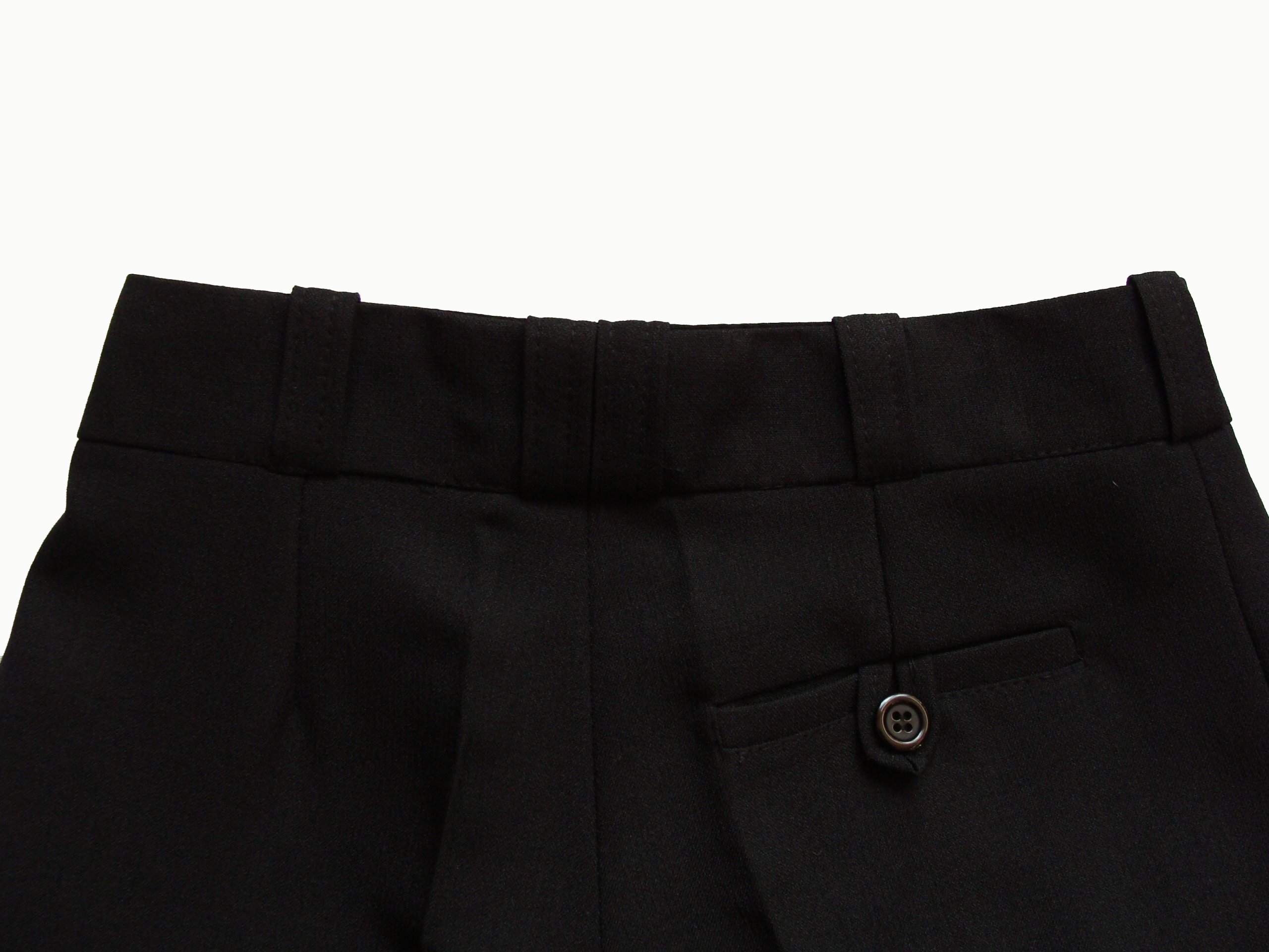 Штани мають з обох боків додаткові клапани з двома ґудзиками, які дозволяють регулювати ширину пояса. Ми використали це рішення, відмовившись від гумок, оскільки за визначенням це мають бути молодіжні парадні штани, тож, швидше за все, перші справжні брюки для вашого хлопця.