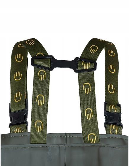 Водери з незмінно привареними високоякісними башмаками. Модель виготовлена з водонепроникного, міцного матеріалу, що забезпечує ефективний захист від води. Технологія двостороннього зварювання підвищує міцність швів. Внутрішня кишеня дозволяє легко зберігати документи. Комфорт використання виробу покращують регульовані широкі гумові лямки.