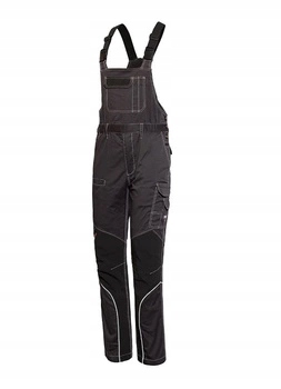 Еластичні комбінезони зі вставками зі стійкої до стирання тканини та світловідбиваючими кантами, які регулюються завдяки регульованим еластичним підтяжкам, еластичній талії та крою Fit. Десять кишень, включаючи місце для мобільного телефону та лінійок, передня нагрудна кишеня з місцем для ручки. Потрійні шви та міцний матеріал.