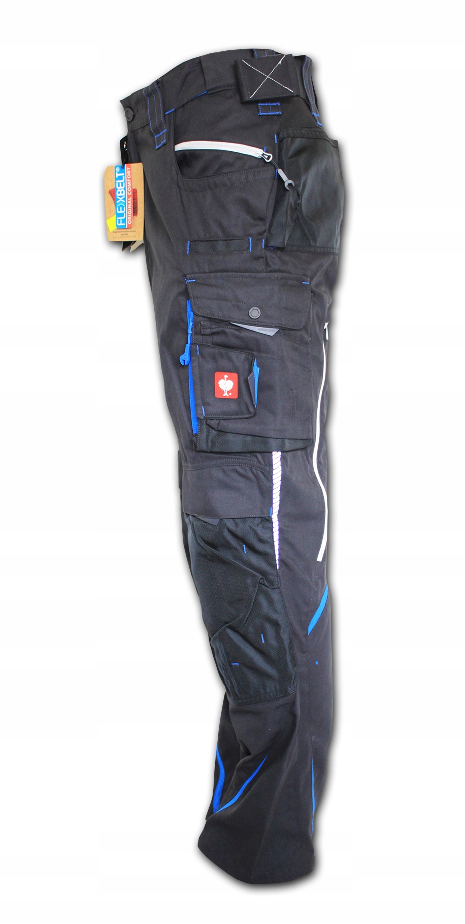 Робочі штани мають пояс, виготовлений за технологією Flex Belt, завдяки чому модель має еластичний пояс для надійної посадки. Штани також мають знімний розріз ззаду, що ідеально підходить для теплих днів і забезпечує високий рівень комфорту. Спеціальні наколінники, посилені матеріалом Cordura, захищають коліна. Модель es.motion 2020 оснащена численними кишенями - 2 глибокі кишені спереду та ззаду, велика бічна кишеня на застібці та 2 маленькі кишені на блискавці.