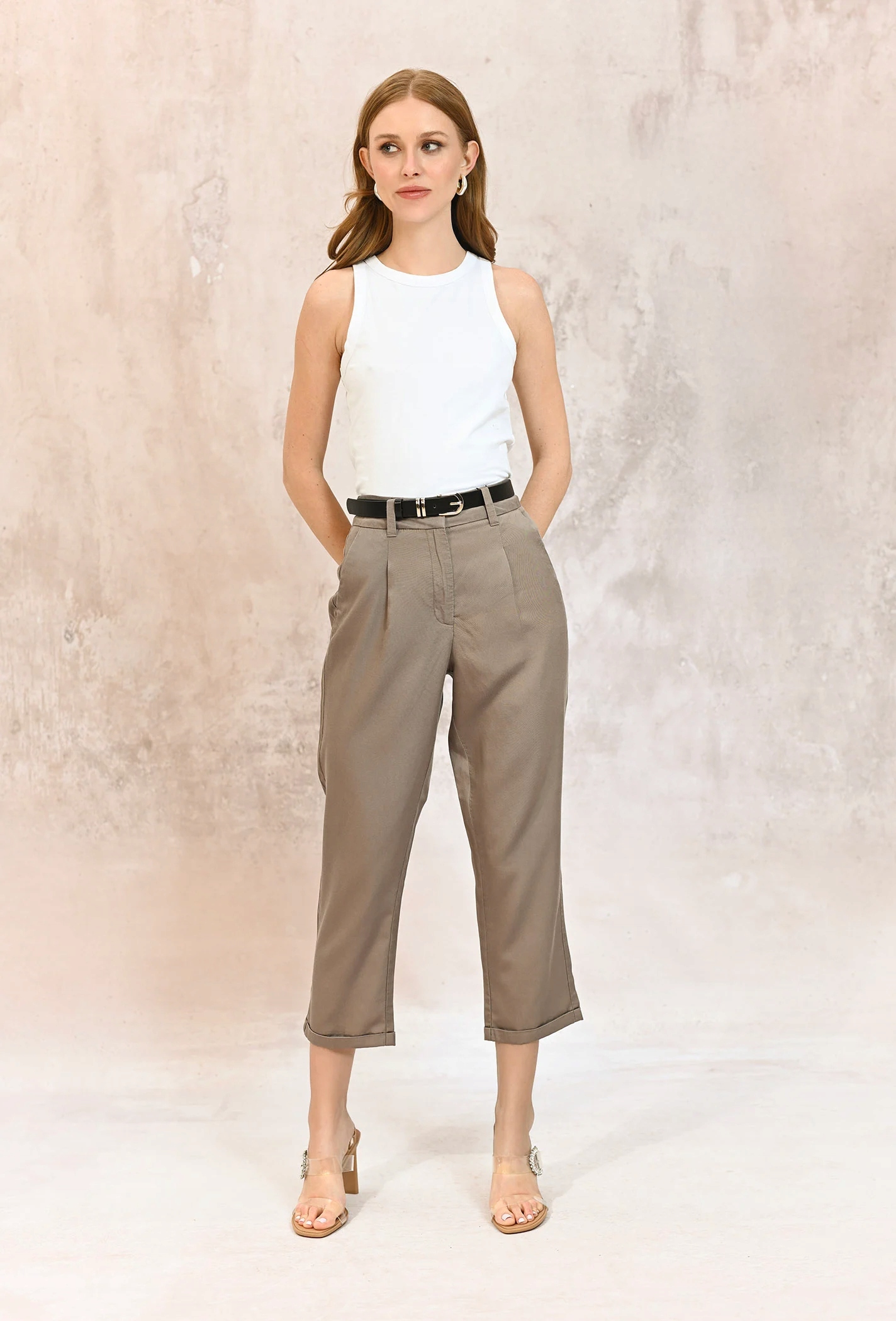- Стильні штани-сигарети з м'якого та повітряного ліоцелю, що забезпечують комфорт протягом усього дня. Застібаються на блискавку та кнопку, мають кишені на висоті стегна. Пряма штанина надає їм елегантний, класичний вигляд, ідеальний як для роботи, так і для світських зустрічей. Це позачасовий стиль, який ідеально поєднується з різними стилями. . Модель на фото має зріст 175 см і носить 36 розмір.