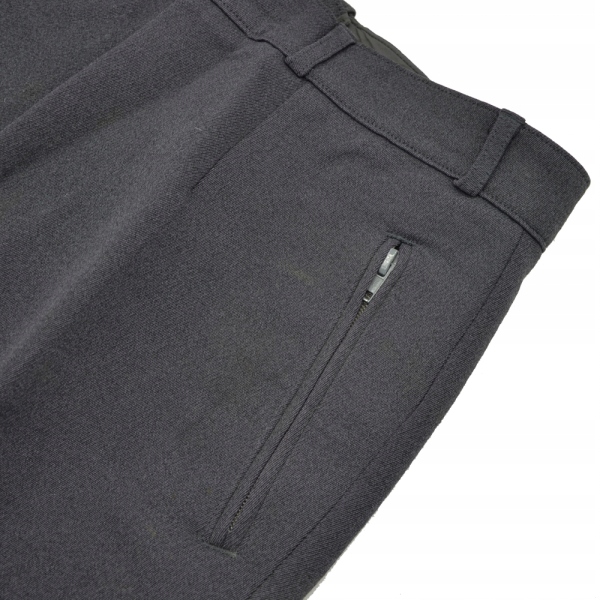 Штани застібаються на гачок і блискавку і мають загалом 3 кишені. Дві класичні бічні кишені і одна на задній частині штанів - всі на блискавці. Вони мають шлевки для ременя, що дозволяють носити ремінь шириною не більше 4 см.