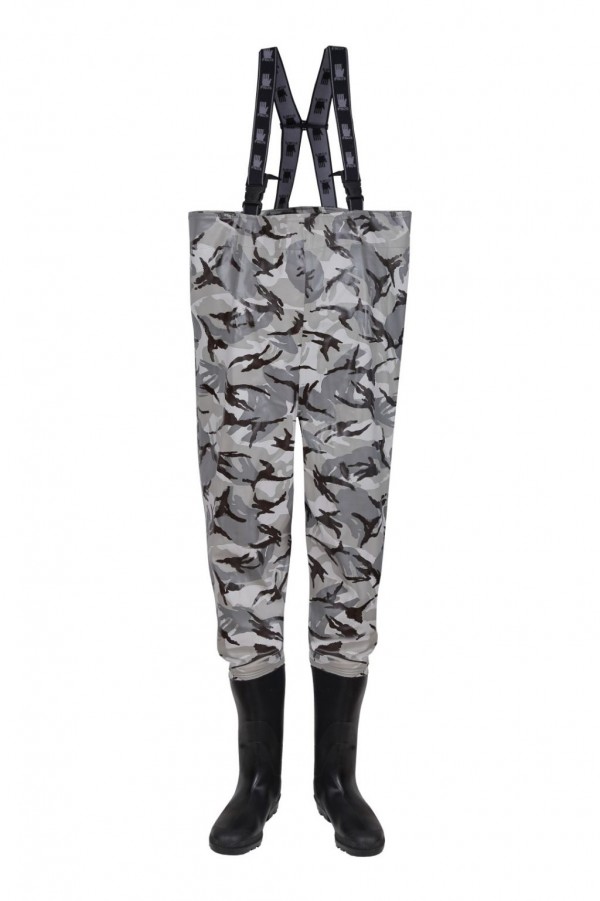 штани в камуфляжі, що забезпечують відмінне камуфляж. У них є комфортні гнучкі брекети та постійні свердловини. Виготовлений з водонепроникної бавовняної тканини Plavitex, на бавовняній основі. Модель призначена для використання під час риболовних поїздок та для всіх риболовних робіт. Вони забезпечують ефективний захист ніг від води та грязі. Двостороння техніка зварювання збільшує міцність швів. Граматика 540 г/м2. Він характеризується стійкістю до розриву та водонепроникних швів. Склад покриття гарантує стійкість до тканини до несприятливих погодних умов, включаючи згинання при температурі до -50 ° С