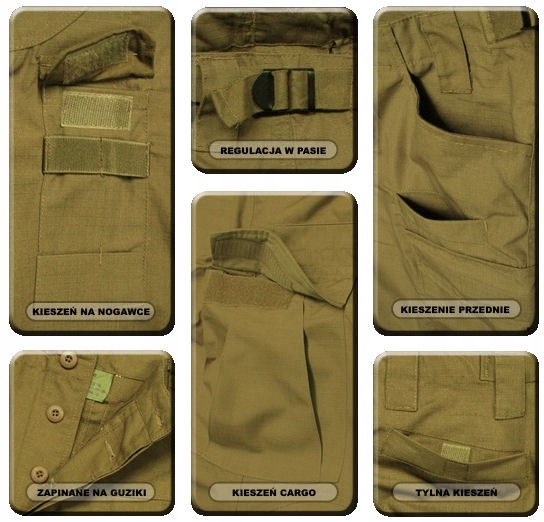 Пропонована модель виготовлена з тканини RipStop, що складається з 100% бавовни. Цей матеріал характеризується високою стійкістю до механічних пошкоджень (потертостей, розривів) і хорошою повітропроникністю.
