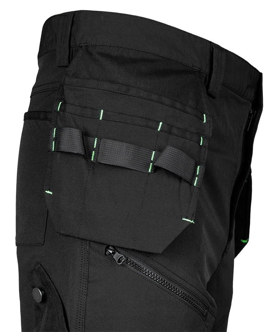 Робочі штани Mix&Match, стрейч у 4 сторони, з кобурою, підсилення Cordura, чорні, розмір L 81-296-3-L від NEO TOOLS - це штани з лінії Mix&Match, спонукаючи до самостійного комбінування та комбінування елементів обраного робочого одягу. Штани виготовлені з міцного 4-стороннього еластичного матеріалу з кобурою, що складається з 91% нейлону та 9% спандекса, щільністю 230 г/м2. Вони мають міцне посилення Cordura на інструменті та бічних кишенях, на колінах і в нижній частині гомілки. Для них характерний чорний практичний колір з неоновими елементами. Завдяки світловідбиваючим вставкам на передній і задній частині колін вони підвищують видимість користувача вночі. Численні кишені - бічна кишеня з ремінцями для інструментів, бічні кишені на блискавці і відстібні бічні кишені на блискавці дозволяють легко зберігати багато дрібниць. У свою чергу, бирка з іменем полегшує ідентифікацію одягу в професійному середовищі.