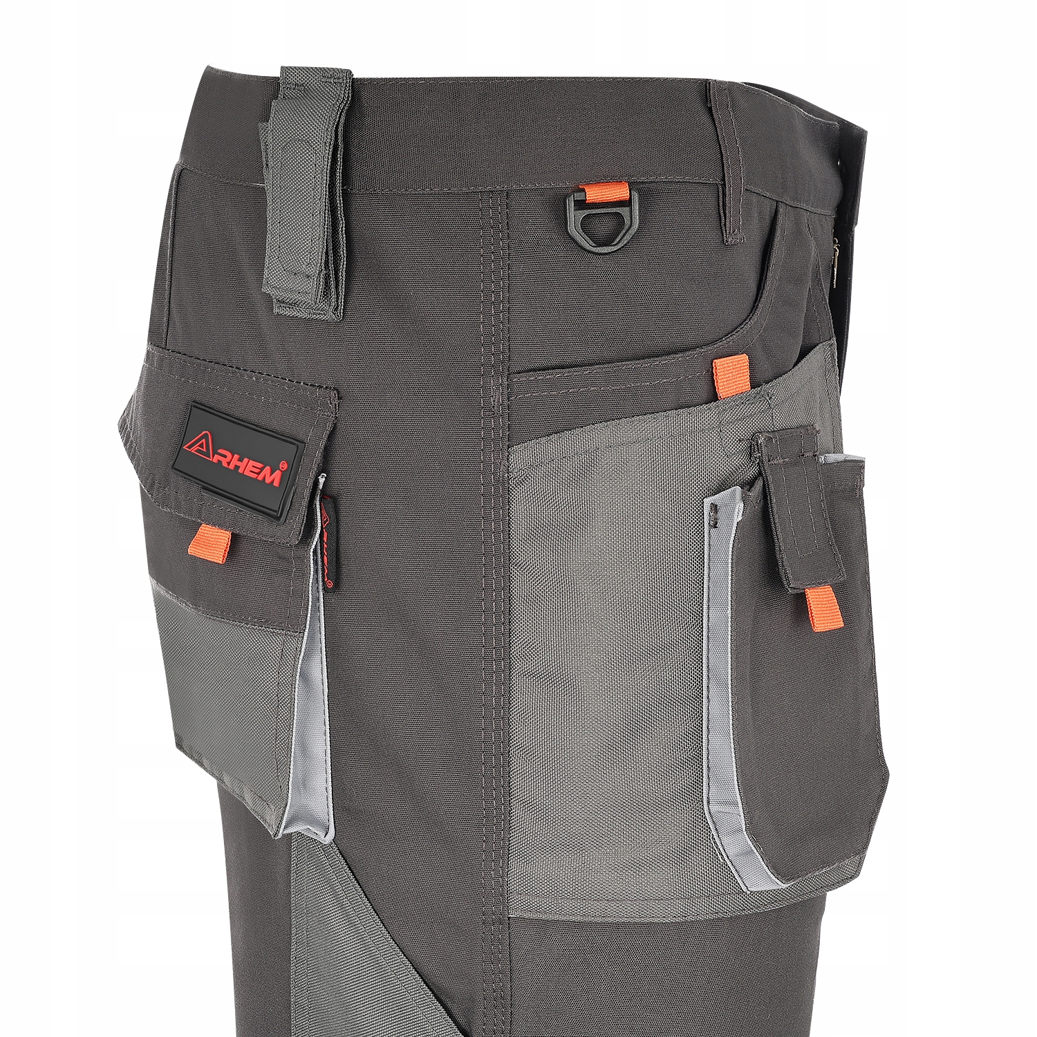 ✔ Штани з гнучким поясом виготовлені з дуже міцної тканини (80% поліестеру) 20 % бавовна) сірого кольору з графітовими та помаранчевими вставками.
