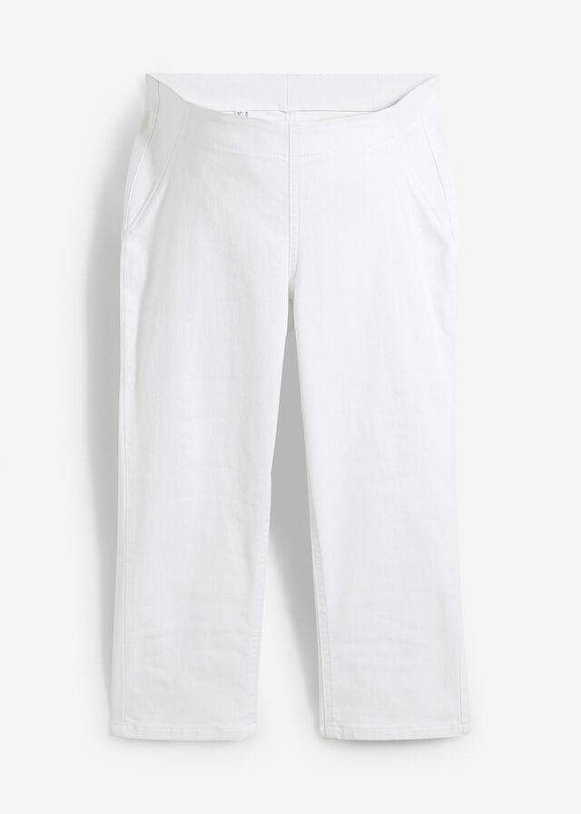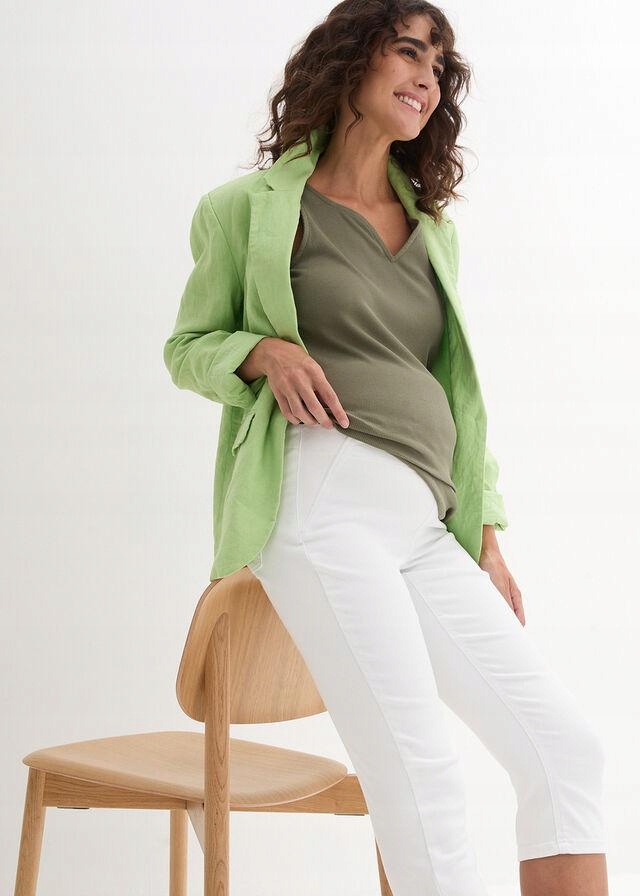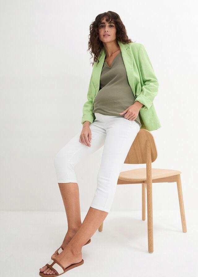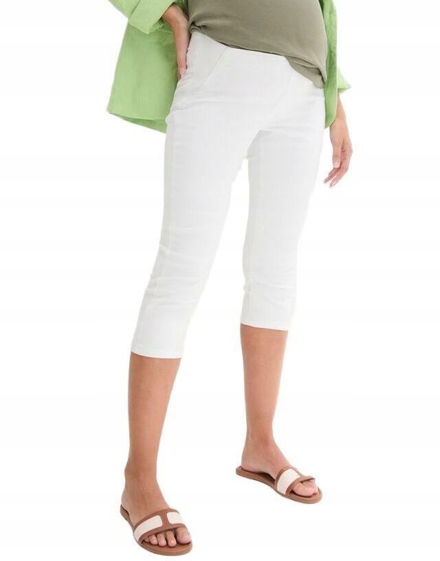 штани, рибалки, бавовняний білий денім, збігаються, є ідеальним вибором для майбутніх матерів, які цінують комфорт та стиль. Зроблені з м'якої бавовни з додаванням джинсів, вони ідеально адаптуються до мінливої фігури, забезпечуючи комфорт протягом дня. Розріз рибалок наголошує на ногах, а білий колір надає легкість і свіжість будь -якій стилізації. Ідеально підходить для тепліших днів і випадкових випадків.