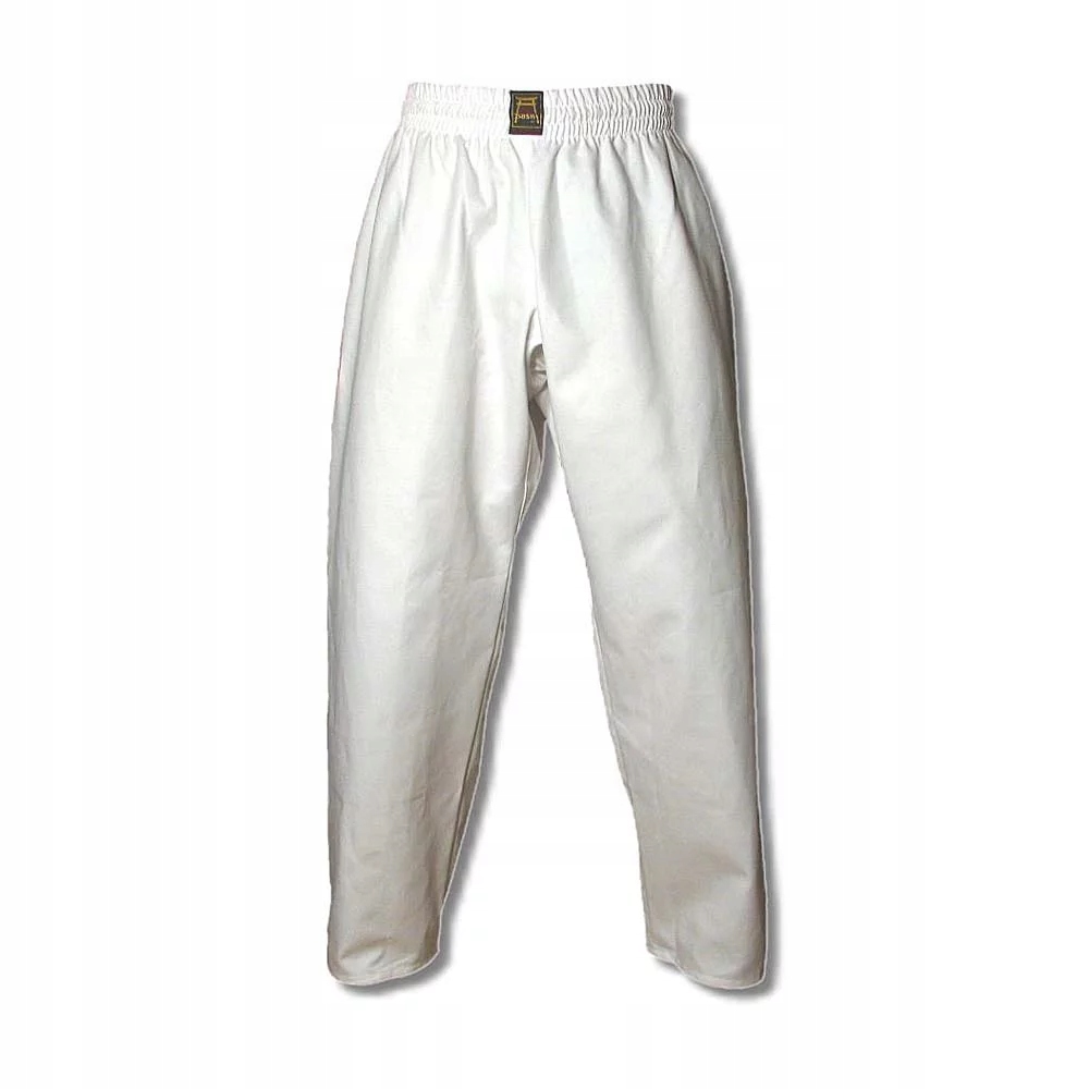 Білі тренувальні штани для бойових мистецтв. 100% бавовна, вага тканини 10 унцій, еластичний пояс шириною 6 см зі шнурком, міцний і зручний. Вони мають широку ластовицю в промежині, тому ми можемо легко тренувати удари ногами тощо.