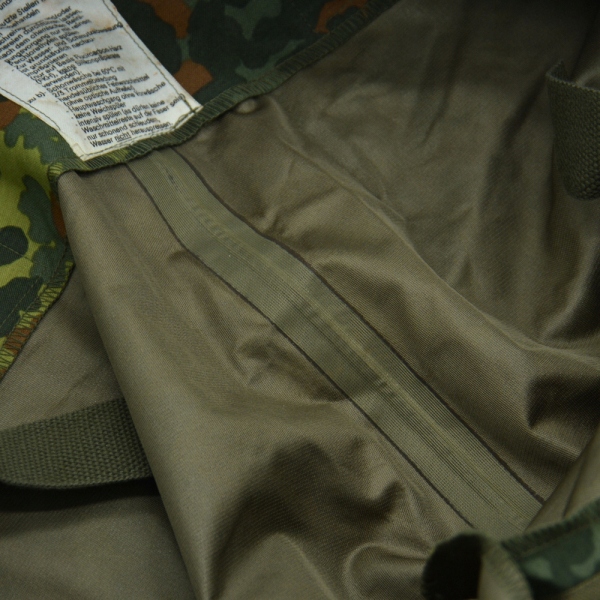 Оригінальні дощові штани із засобів німецької армії. Виготовлений з високоякісного матеріалу з мембраною з особливостями і властивостями Gore-tex. Вони повністю водонепроникні (всі шви додатково проклеєні), вітронепроникні та дихаючі. Застібається на блискавку, завдяки чому ми маємо доступ до кишень переднього шару одягу. Вони оснащені регульованими підтяжками. Обхват регулюється за допомогою шнурків, розташованих внизу штанин і на талії.