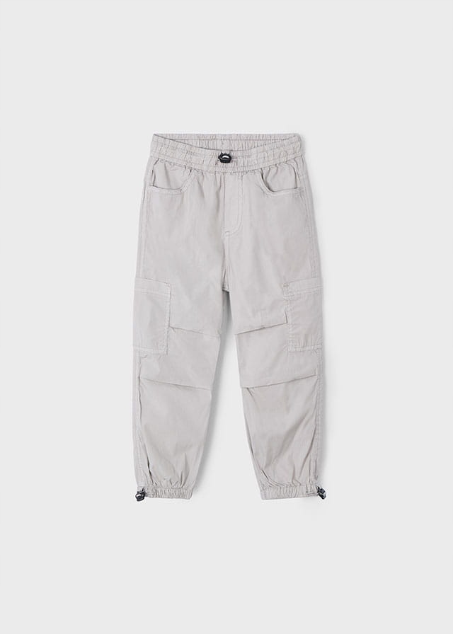 Парашутні штани в сірих, виготовлені з легкого та зручного матеріалу. У них є практичні кишені з боків, забезпечуючи функціональність щодня. На талії вони мають гнучку еластичну смугу, яка гарантує комфортне пристосування, а додаткове володіння на ногах дозволяє налаштувати ширину, надаючи їм модний і сучасний вигляд. Ідеально підходить для активних хлопчиків, поєднання комфорту та стильного дизайну.