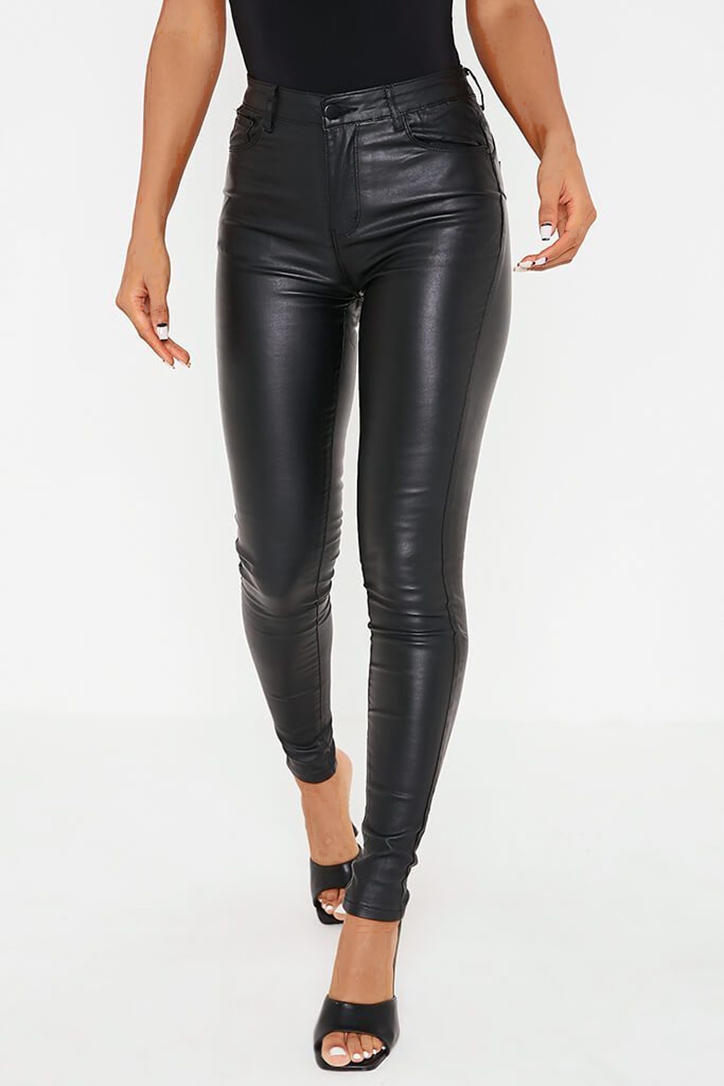 ШТАНИ З ВОЩЕНОЇ ШКІРИ З ВИСОКОЮ ТАЛІЄЮ