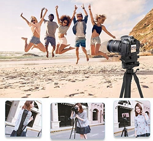 ЛЕГКИЙ ТА МІЦНИЙ - Легкий штатив важить лише 1,017 кг, і його можна легко носити з сумкою для перенесення. з ремінцем. Дуже зручно для подорожей. Центральний вантажний гак на центральній колоні дозволяє додати додаткову вагу для додаткової стабільності. Нековзкі гумові ніжки також забезпечують чудове зчеплення на різних поверхнях, допомагаючи робити чудові фотографії будь-коли та будь-де.