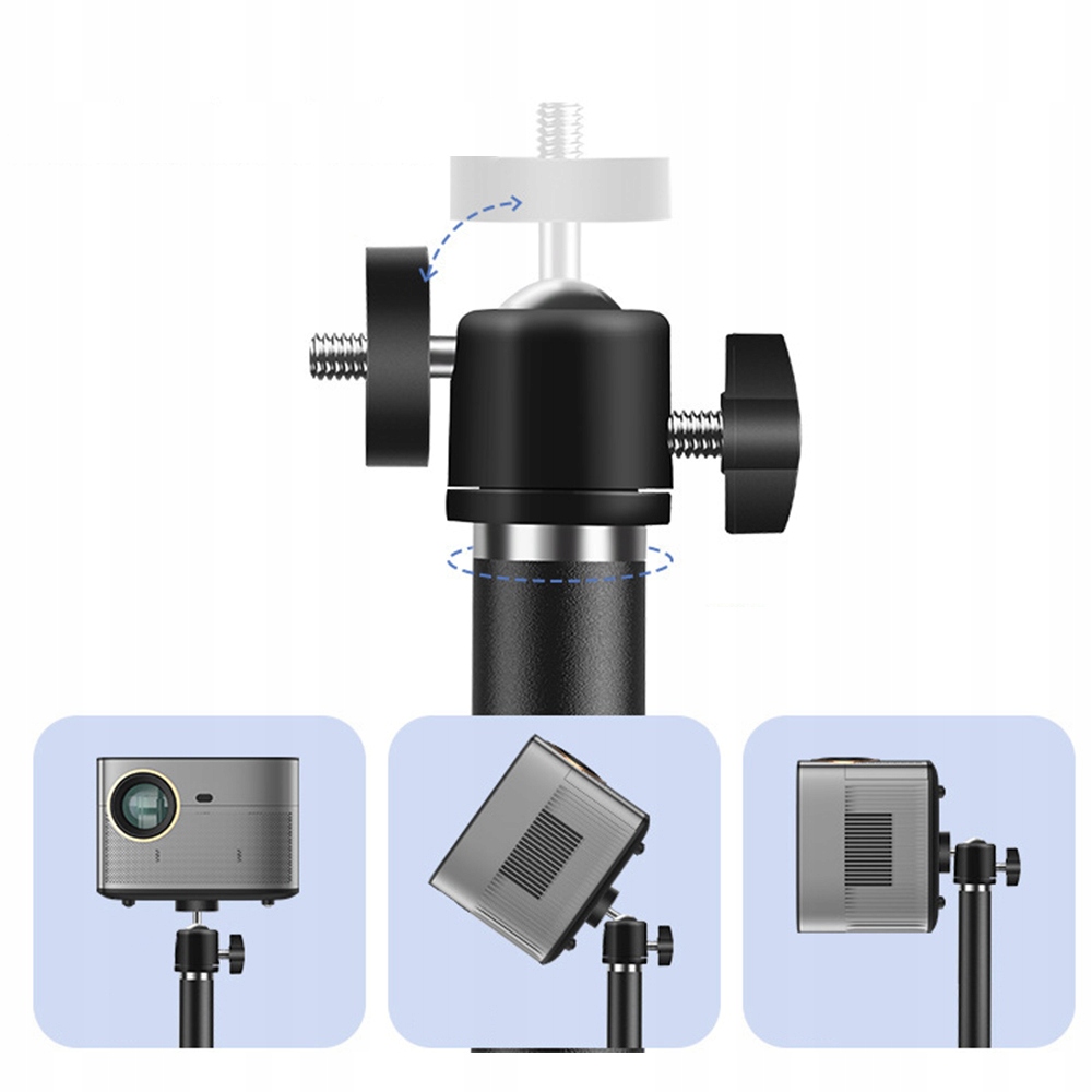 🔩-Голівка штатива забезпечує горизонтальне обертання на 360° і нахил 90°, а висоту опорного стрижня можна регулювати від 24,8 до 50 дюймів за допомогою металевої ручки, що дозволяє досягти ідеального ефекту проекції.