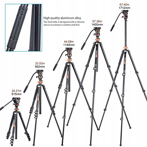 Професійний штатив для відеокамери, Cayer AF2451 67 дюймів із тяговою головкою, 4-компонентний компактний алюмінієвий штатив для цифрових дзеркальних фотоапаратів, який можна скласти до монопода, максимальне навантаження 60 кг для цифрових дзеркальних фотокамер, відеокамери