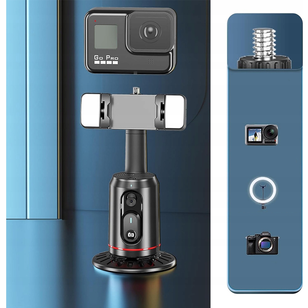 Тримач для телефону з автоматичним відстеженням обличчя, поворот на 360°, обличчя, тіло, телефон, штатив, розумна камера для зйомки, перезаряджається, пульт дистанційного керування та 2 світильники