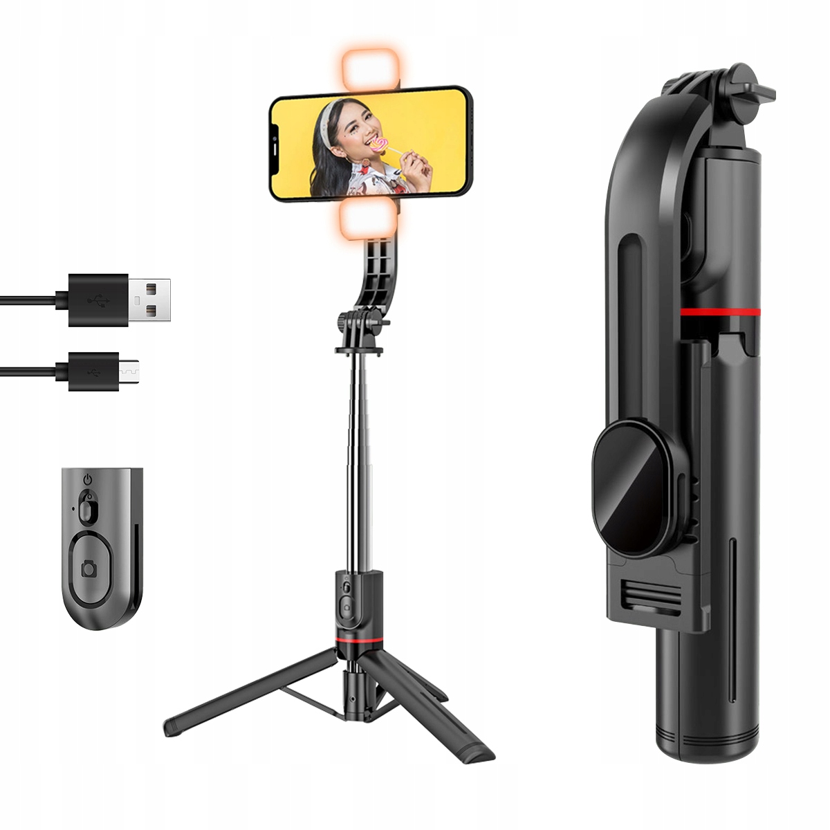 1 x штатив для селфі (включно з пультом дистанційного керування Bluetooth і двома заповнювачами)