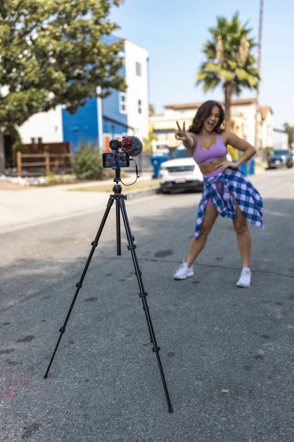 компактним світлом роботи до легкого штатива з головкою кулі, призначеною для компактних камер до 1,5 кг. griptight 360, що дозволяє швидко змінити положення з горизонтальної на вертикальну та прикріпити додаткові аксесуари, такі як мікрофон або світлодіодна лампа.
