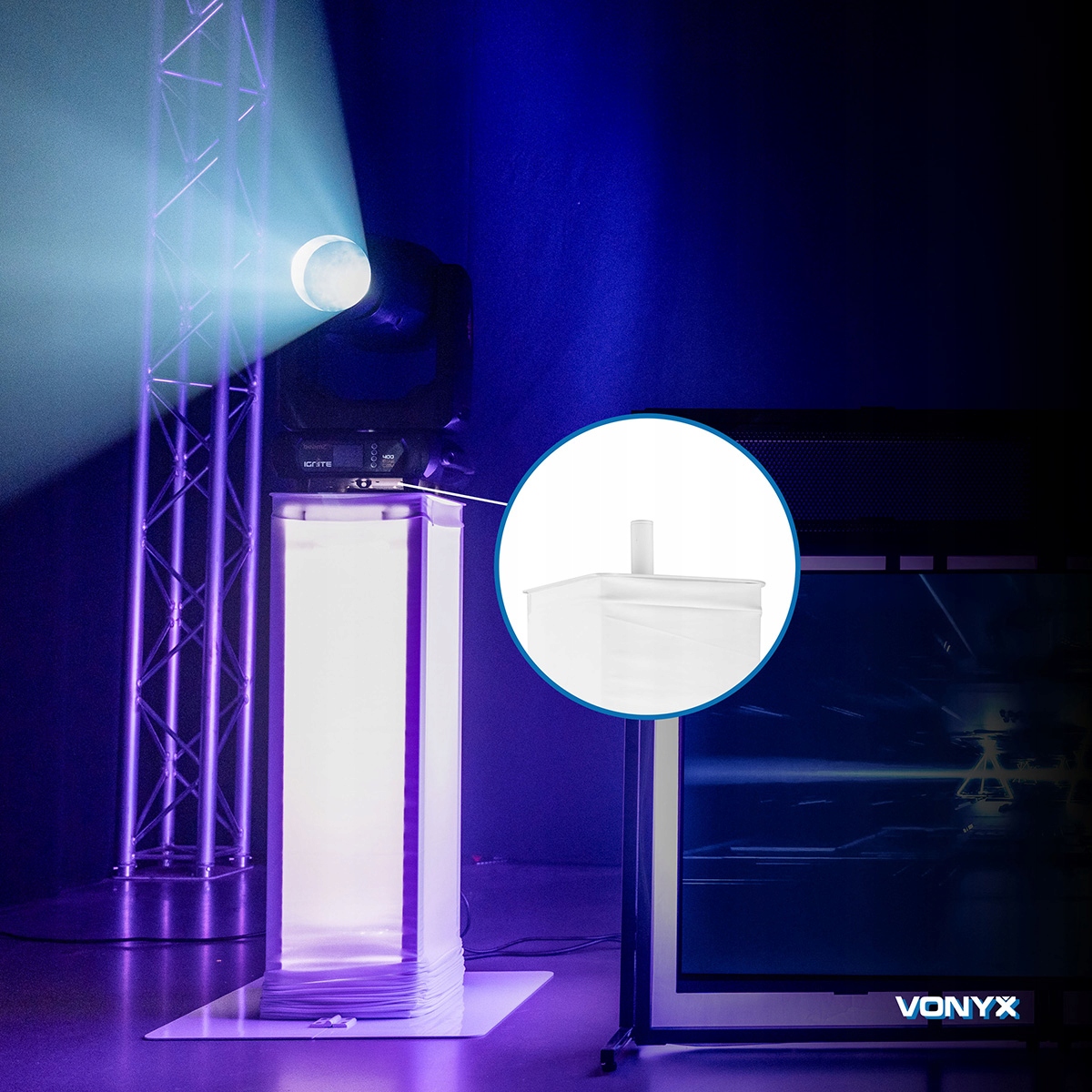 Біла кришка злегка прозора, що дозволяє досягти дивовижного візуального ефекту - розташувавши за нею світлодіодний, PAR або точковий світильник, ви зможете створити ефектне підсвічування, додавши сцені неповторну атмосферу.