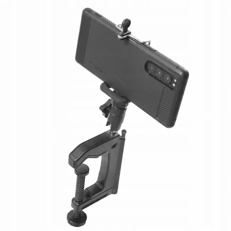 Тримач дозволяє прикріпити штатив як лещата, прикрутивши його до краю столу, стільниці, полиці, труби чи паркану. Його також можна використовувати яккласичний настільний штатив.