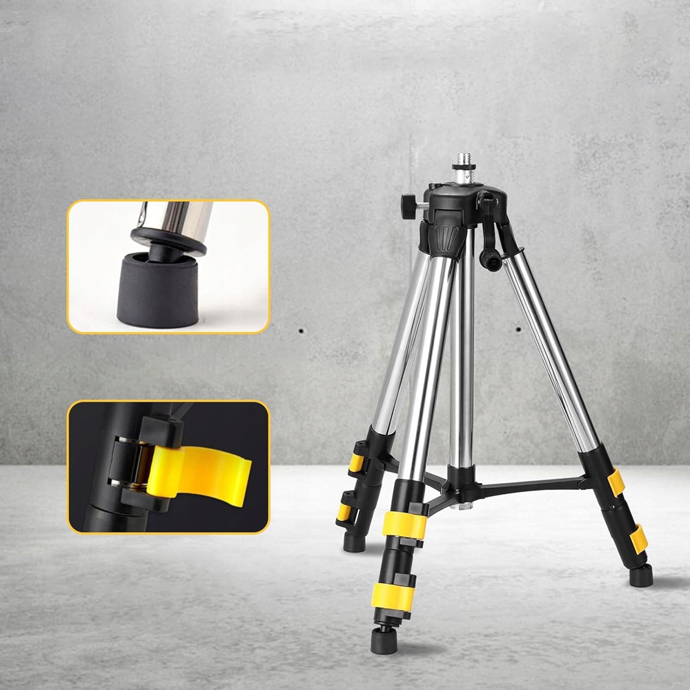 Три рівні регулювання висоти, три точні важелі швидкого звільнення та подовжена центральна стійка дозволяють адаптуватись до різноманітних будівельних потреб.