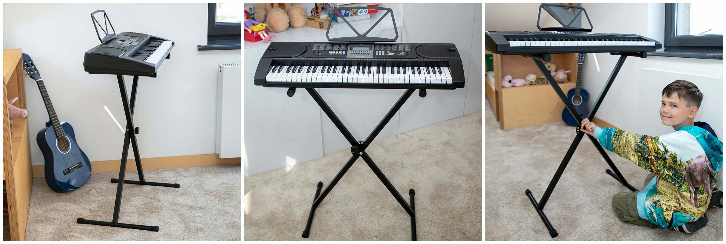Якщо ви думаєте, яку підставку для клавіатури вибрати для дому, сцени чи репетиційної кімнати, ми рекомендуємо X3! Це не лише якість виготовлення, яка створює міцну та стабільну конструкцію, але й ✅ дуже конкурентоспроможна ціна порівняно з аналогічними підставками для клавіатури, доступними на ринку. X3 забезпечує високий комфорт і зручність використання. Поперечини опори інструмент і ніжки стійки оброблені гумовими накладками. Завдяки їм ключі міцно лежать на місці, а вся конструкція не рухається по землі. Після гри рамку можна швидко скласти. Тоді він займає мало місця, тому його легко транспортувати та зберігати. Це зручне рішення як для сцени, так і для дому.