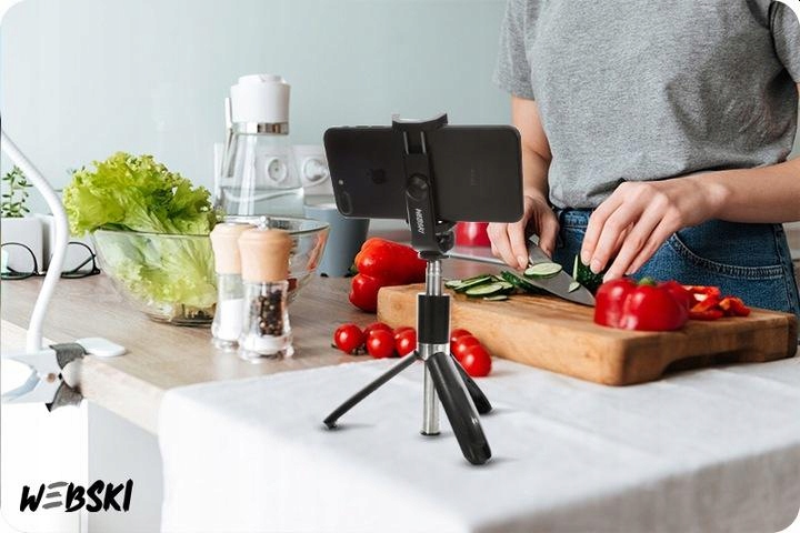 Якщо, наприклад, під час приготування їжі вам потрібна підставка для телефону, щоб слідувати відеопосібнику чи просто показувати рецепт, ідеально підійде штатив. Просто розгорніть ручку палиці, встановіть відповідну висоту та ідеальний кут, і все.