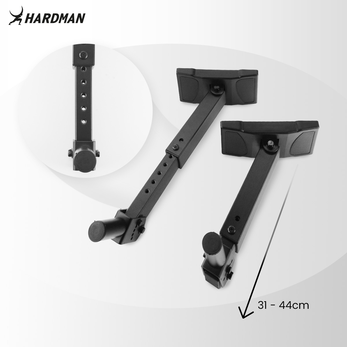 Діапазон регулювання від стіни або іншої конструкції кріплення: від 34 см до 43 см, дозволяє гнучко адаптуватися до різних макетів кімнат та конкретних потреб користувача. Завдяки цьому, штатива може бути встановлена оптималізованою способом внутрішньої акустики та забезпечення найкращого розподілу звуку.