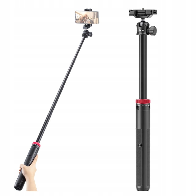 Ulanzi MT-44 — це високий, але компактний штатив 2-в-1 у складеному вигляді, який може працювати як класичний штатив або висувна штанга для селфі. Завершується кульовою головкою з різьбленням 1/4", яка за кілька секунд трансформується в затискний тримач для смартфона з можливістю кріплення додаткових аксесуарів - наприклад, світлодіодної лампи або зовнішнього мікрофона. Загальна довжина стріли – 145 см.