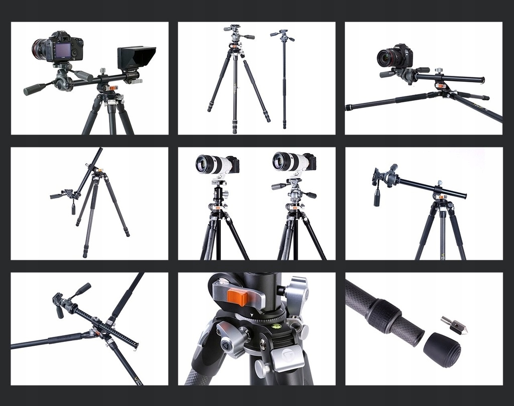 - Додатковою опцією є трансформація однієї з ніжок у зручний монопод з максимальною висотою 183,5 см.