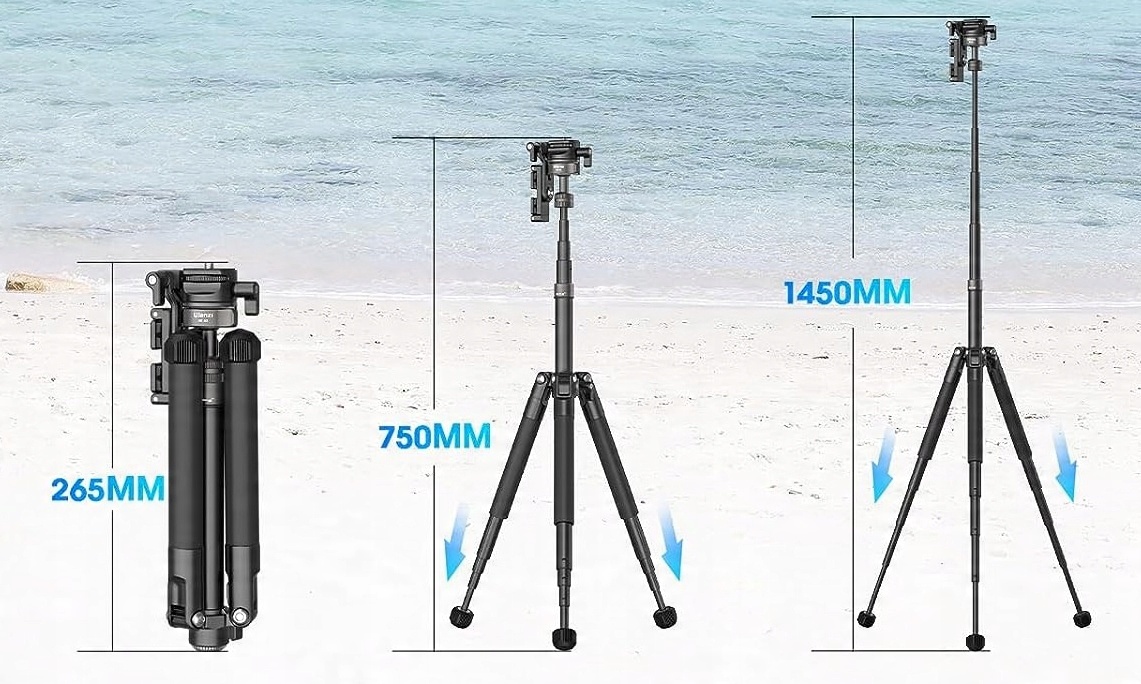 - Штатив легкий і зручний у транспортуванні, у складеному вигляді його довжина становить лише 26 см