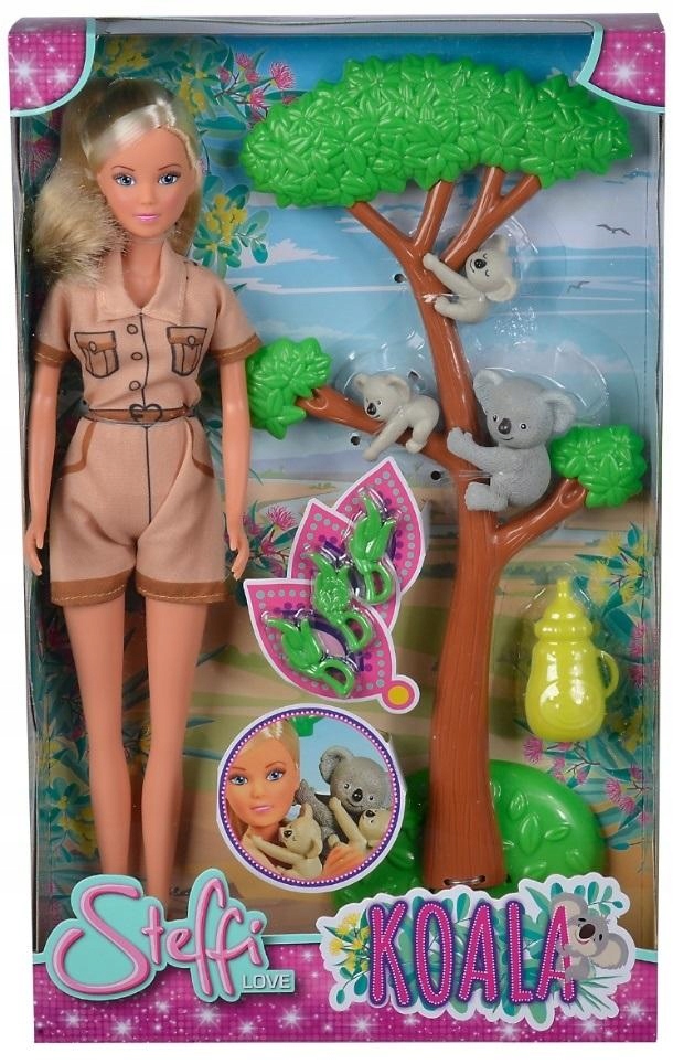 Дівчатам подобається виконувати ролі, які вони спостерігають у дорослих — грати в доглядача коали — чудовий спосіб отримати нові навички та співчуття до тварин. Штеффі та її милі вихованці цього разу дуже піклуються про австралійських сумчастих. В комплекті дерево - обов'язковий атрибут коали, листя для годування і пляшечка для напоїв тварин, висота ляльки: 29 см, 3+