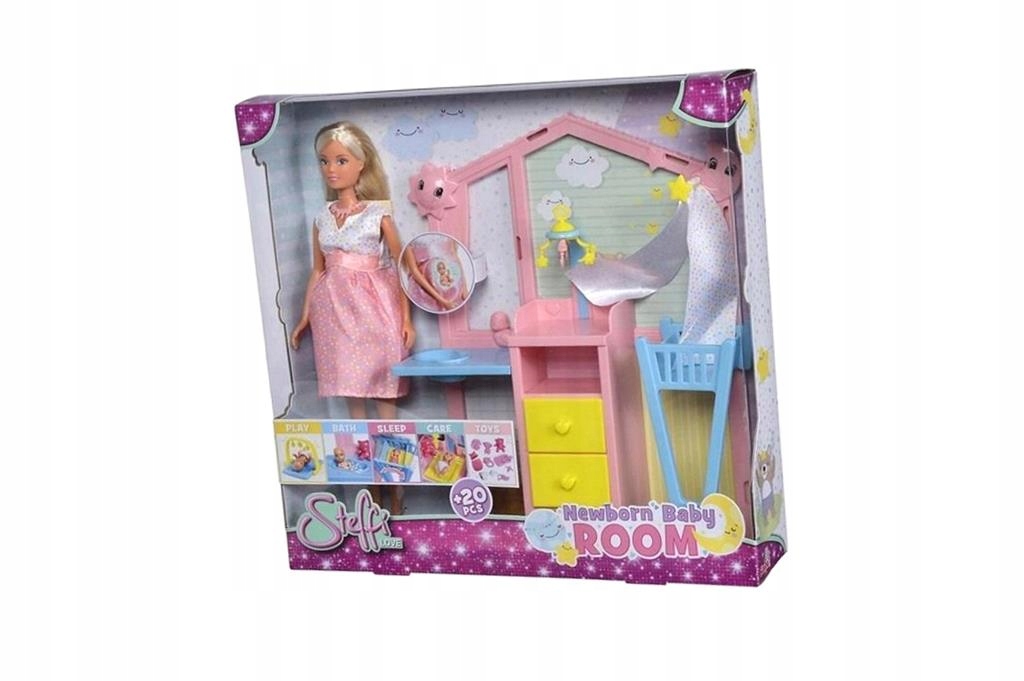 У своїй кімнаті Штеффі вагітна дитиною, є люлька, пеленальний столик, дитяча ванночка та численні аксесуари. Висота ляльки: 29 см.