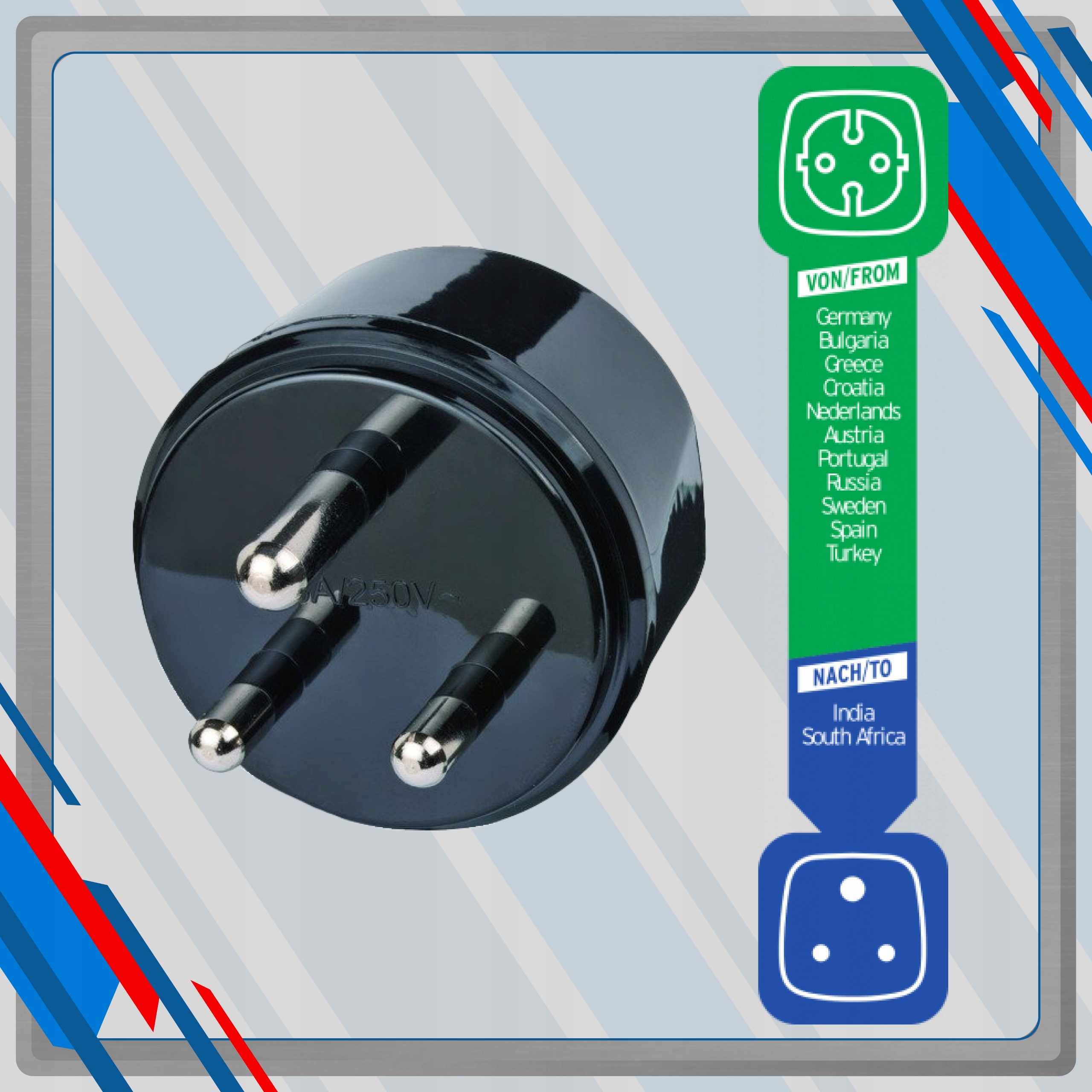 Штекер туристичний адаптер Південна Африка Індія Штекер
