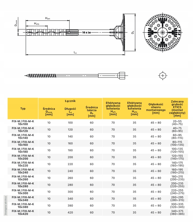 - Дюбель ідеально підходить для кріплення теплоізоляційних матеріалів, таких як пінополістирол і мінеральна вата, до бетонної основи і зовнішніх стін, таких як: газобетон, цегла.