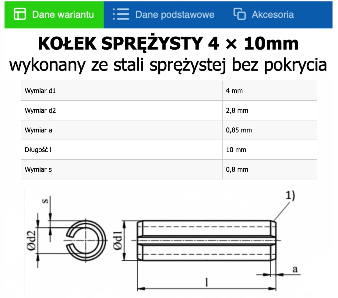 Просматривая «Пружинный штифт DIN 1481 пружинная сталь 4х10мм 100шт.», вы можете быть уверены, что данный товар из каталога «Колышки» будет доставлен из Польши и проверен на целостность. В цене товара, указанной на сайте, учтена доставка из Польши. Внимание!!! Товары для Евросоюза, согласно законодательству стран Евросоюза, могут отличаться упаковкой или наполнением.