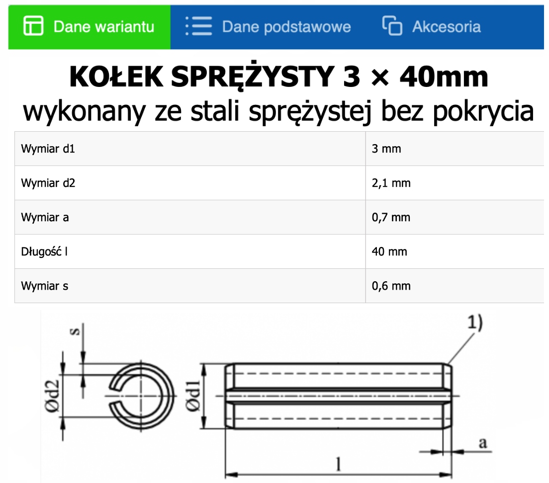 Посилений розрізний пружинний штифт, виготовлений відповідно до DIN 1481 з пружинної сталі без покриття. Для штифтів із зовнішнім діаметром 10 мм або більше однофазна конфігурація є необов’язковою та залежить від постачальника.
