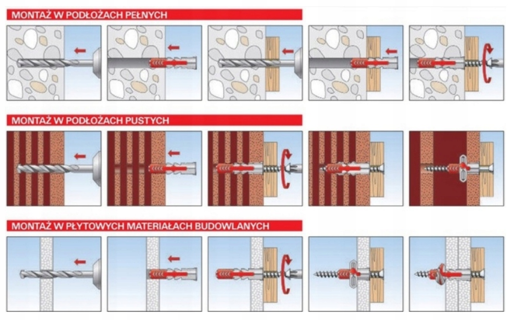 - Збільшена довжина анкерного кріплення (у випадку DUOPOWER 6x50, 8x65 і 10x80) означає, що такий анкер особливо підходить для монтажу в порожнисту цеглу, газобетон і оштукатурені стіни.